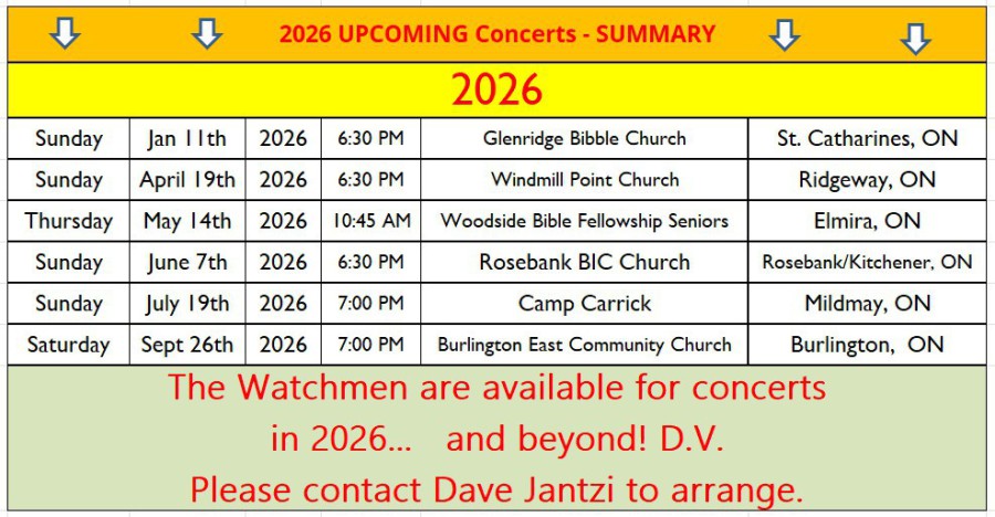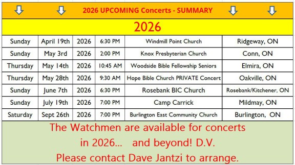 We endeavor to keep this page as current as possible. If you have any questions about a Watchmen concert, please call the promoter or venue directly. Thanks.
